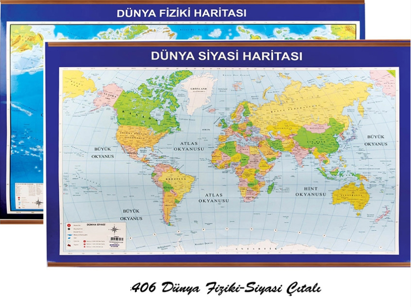 Dünya Siyasi + Fiziki Çıtalı Harita