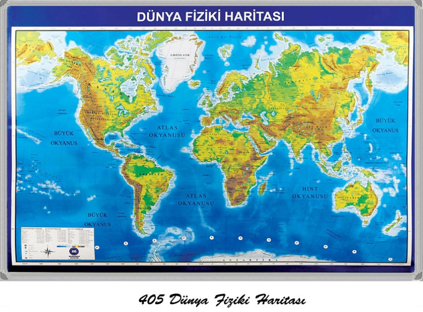 Dünya Fiziki Haritası (Alüm.Çerçeve)