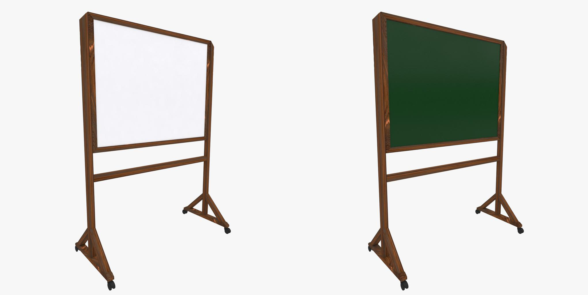 Tekerlekli ahşap ayaklı çift taraflı yazı tahtası